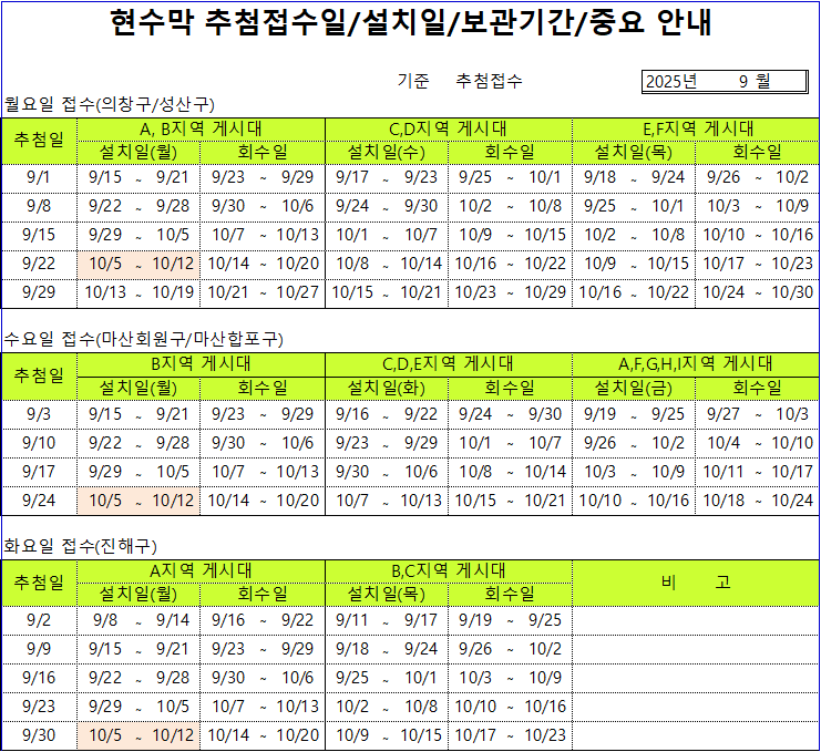 2025³â 9¿ù Çö¼ö¸· Ãß÷ ¹× °Ô½ÃÀÏÁ¤ ¾È³»